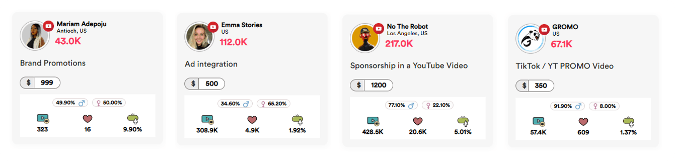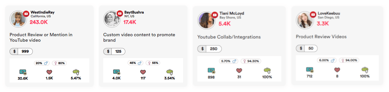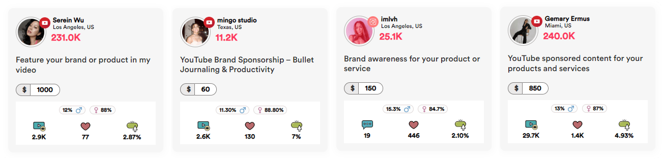 Choosing the right creators to promote your business or brands isn’t an easy task. You need a lot of crucial information to make the right decision. So we made it super simple for you, and provided you everything needed to find the best match. You will find the pricing, number of posts, engagement rate, location, demographic, creator messaging and much more for every single creators. So stop wasting your time and money on other platforms, and get the ball rolling with Racontor right away!
